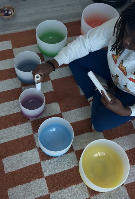 A sound bath is an immersive, meditative experience using crystal singing bowls. The tones and frequencies help harmonize the mind, body, and spirit.